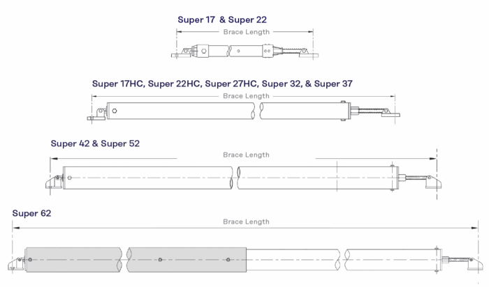 • Variety of sizes to brace panels from 10 ft to 94 ft in height